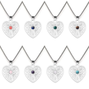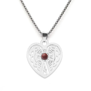 Celebrate the bond of love and nature with our Vintage Carved Heart Pendant Necklace. This exquisite piece features a robust stainless steel heart, intricately etched with classic Celtic-inspired patterns that symbolize eternity and growth. At its center lies a vibrant, natural Green Aventurine stone, adding a touch of serene energy to this sophisticated design.