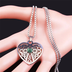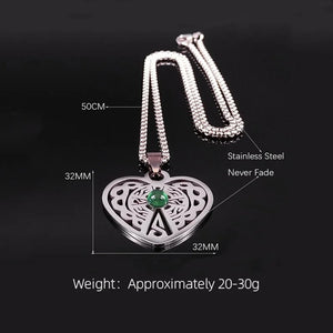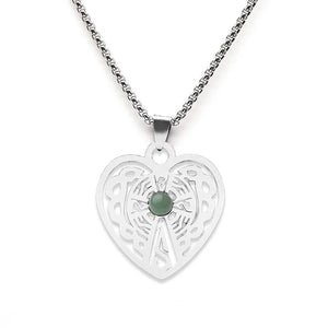 Vintage Stainless Steel Heart Pendant Necklace with Natural Green Aventurine - Celtic Knot Carved Heart Jewelry - Spiritual Protection Gift for Women & Men