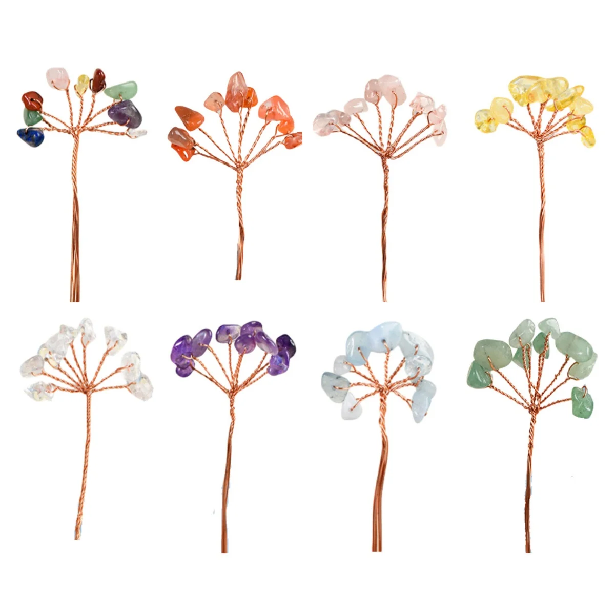 Carved Natural Crystal Chips Gemstone Tree Branch Semi-Precious Stone Home Decoration Ornament for DIY Craft Making